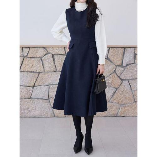 [미라클세븐]여성용 심플 울혼합 레이어드 민소매 니트 롱드레스