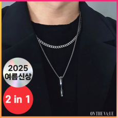 온더밸류 남자 스틱바 레이어드 목걸이 체인 두줄 써지컬