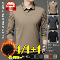 1/1+1 남상용 비즈니스 캐주얼 기모 셔츠 레이어드 스웨터 남성 기모 카라 긴팔티셔츠