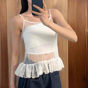 [하프클럽/]여성 시스루 나시 그물 레이어드 바캉스 조끼