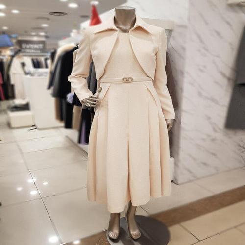 [시크라인] 타이사 자켓 레이어드 플리츠 벨티드 원피스