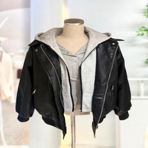 [스타일리쉬바이피클]캐주얼 레이어드 후드 레더 자켓