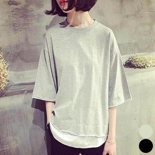 [엄지척]여성 레이어드 무지 반팔티셔츠 오버핏 라운드넥 면티_19600749_667501