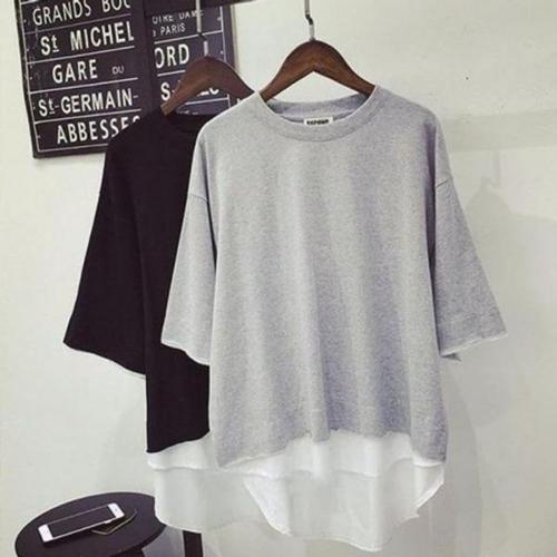 여성 티셔츠 무지 사계절 레이어드 롱 박시 오버핏 루즈핏 반팔 기본 면티