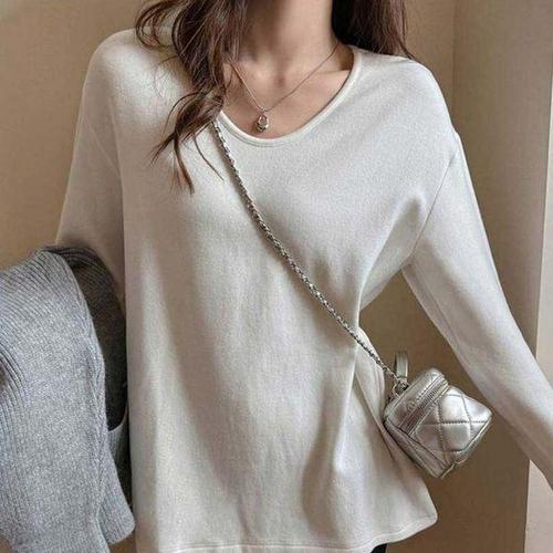 [에이치플러스몰]여성 베이직 레이어드 이너 간절기 긴팔티 소프트 터치 루즈핏 티셔츠