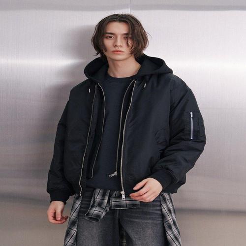 [애드호크]남성) 어반 시크 레이어드 후드 항공 점퍼(HBAUJ4239) BLACK _DG