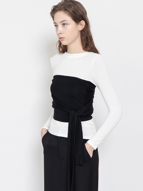 [제이마크뉴욕] 뷔스티에 레이어드 티셔츠_블랙