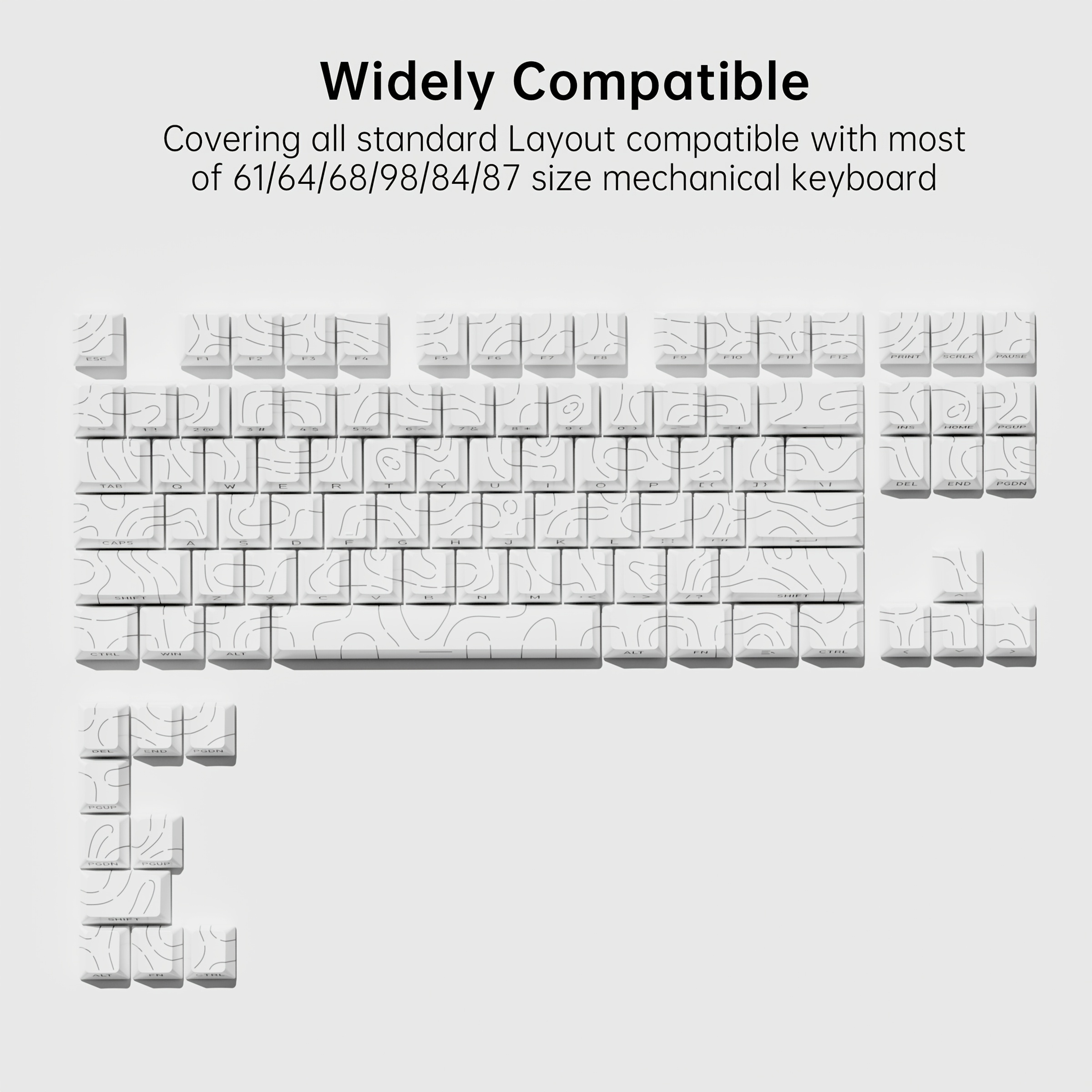 TEMU 키보드용 흰색 라인 키캡 세트, PBT 소재, 승화형, OEM 높이, 미니멀리스트 스타일, ESC, 스페이스 및 입력 키캡 포함