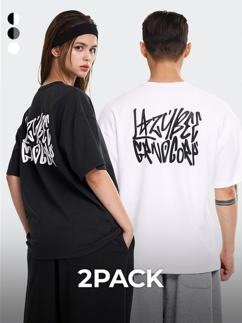 [레이지비] [2PACK] 시그니처 그래피티 오버핏 반팔 기능성 짐웨어 헬스 운동복 반팔 W (3컬러)