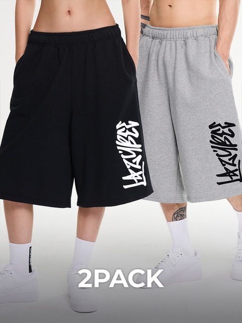 [레이지비] [2PACK] 자이언트핏 와이드 버뮤다 스웨트 팬츠 빅로고 헬스 운동복 반바지 W (2컬러)