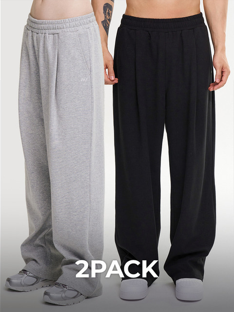 [레이지비] [2PACK] 원턱 스웨트 팬츠 운동복 트레이닝복 와이드 밴딩 바지 W (2컬러)