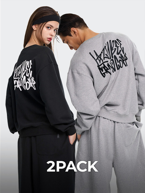 [레이지비] [2PACK] 시그니처 그래피티 루즈핏 맨투맨 데일리 긴팔 스웨트셔츠 W (2컬러)