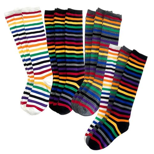 쫑여시 알록달록 키즈 무지개 레인보우 스트라이프 중목 양말 세트