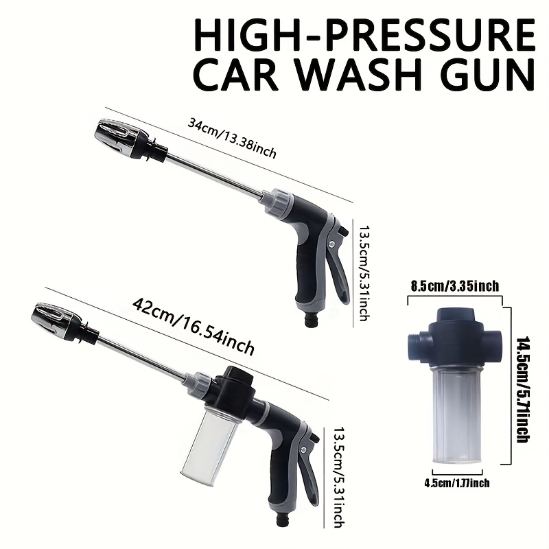 TEMU 1개 고압 폼 물총 - 차량 세척에 적합 - 정원 물주기 - 스테인리스 스틸 연장 로드 스프레이 건|물총