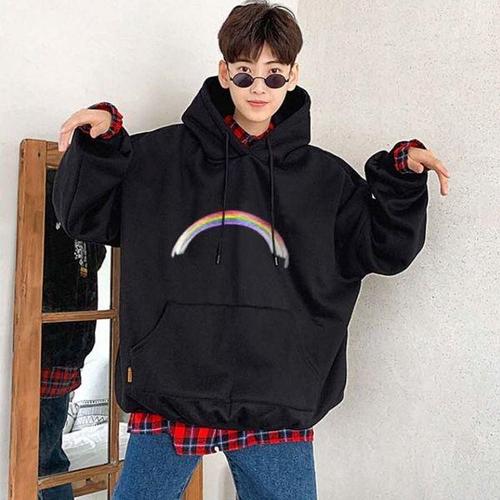 [에이치플러스몰]기본핏 후드 맨투맨 스트릿 레인보우 프린팅 후드티