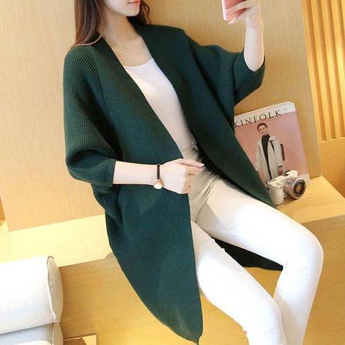 여자 모던 심플 미시 울 니트 롱 로브 가디건
