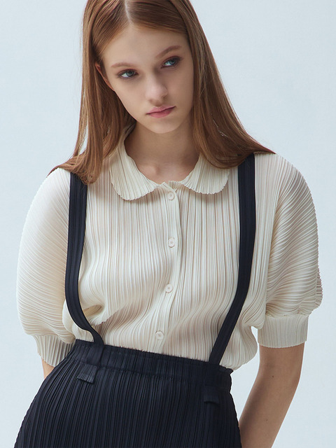 [와이오와이] 라운드 칼라 플리츠 블라우스_3colors