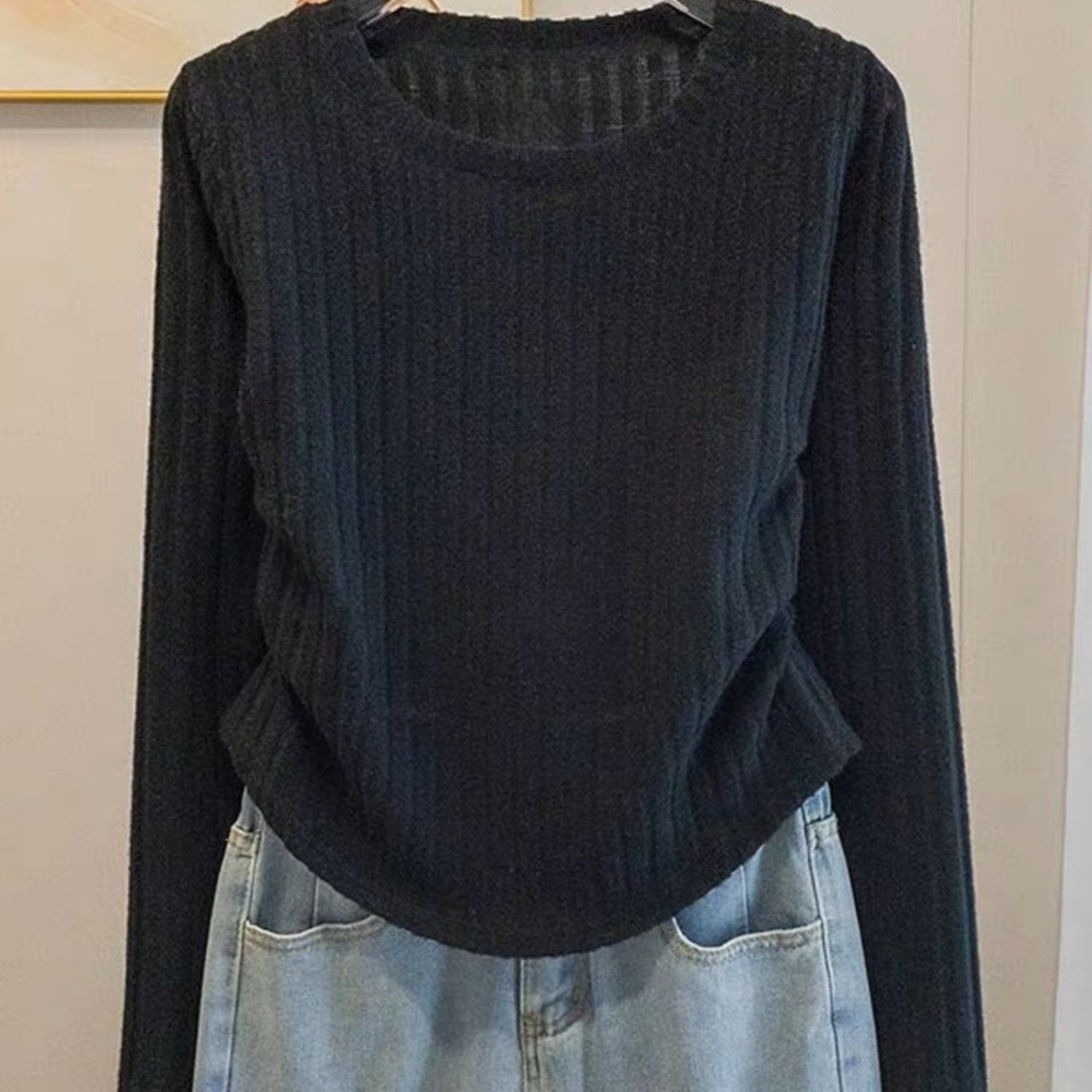 TEMU 여성용 우아한 긴팔 탑 - V넥 튜닉 셔츠, 주름 방지 & 수직 리브드 텍스처, 가을/겨울용 구조적 레이어링 블라우스, 캐주얼에서 포멀까지 연출 가능 (세탁기 사용 가능) - 블랙/진갈색/네이비/그레이/베이지, 여성용 긴팔 상의,여성용 가을 의류