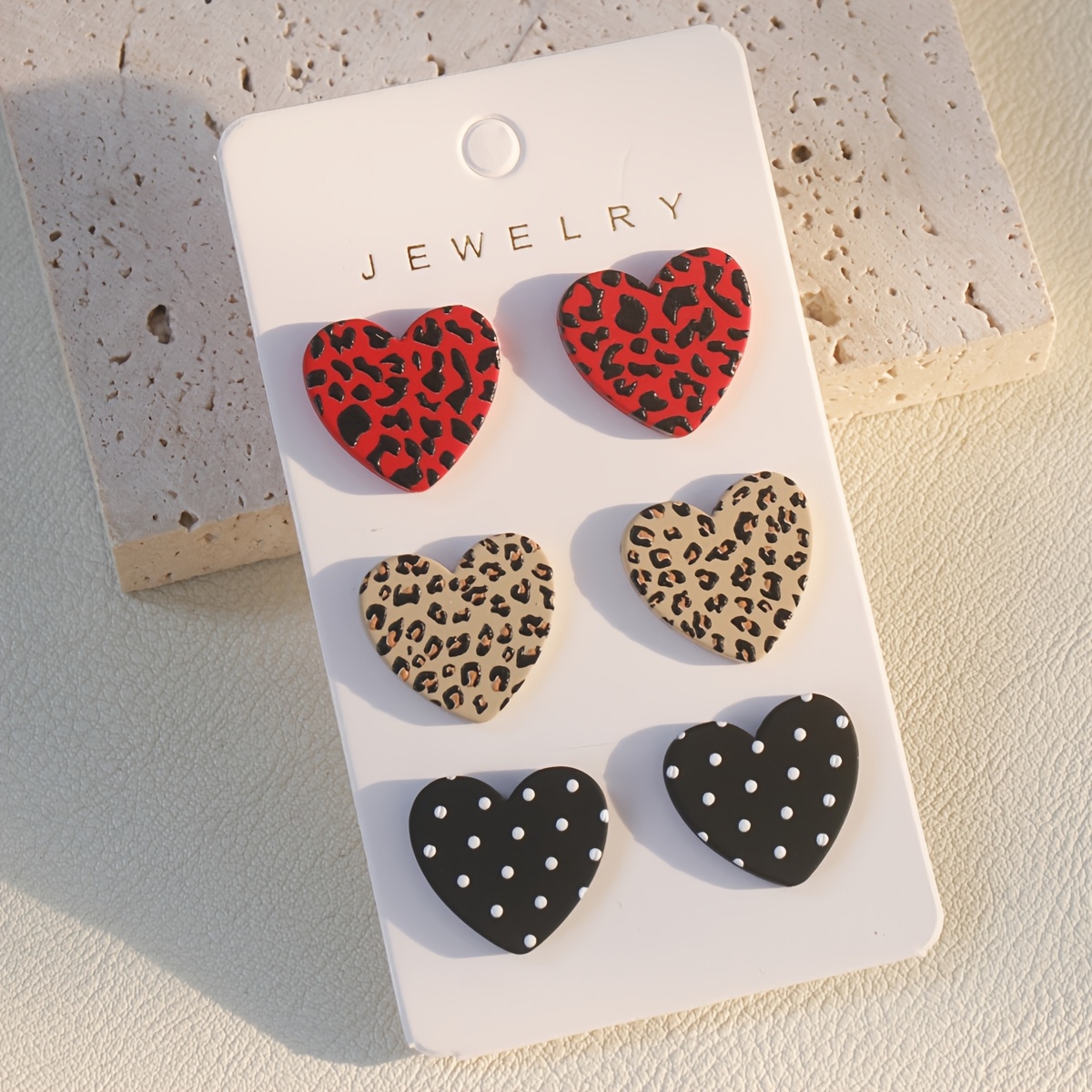 TEMU 3 쌍 빈티지 귀여운 하트 & 프린트 스타드 귀걸이 세트, 스테인리스 스틸, 일상 및 선물 행사, 여성용 데이 보석