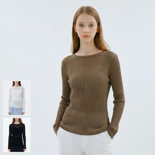 [로코엘라]페리 루즈핏 시스루 여성 라운드 니트