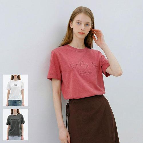 [로코엘라]티엘 코튼 100 내추럴 워싱 레터링 여성 티셔츠 3종세트