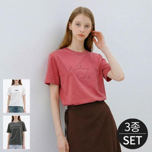 [로코엘라] 네오 코튼 100 피그먼트 레터링 자수 여성 티셔츠 3종세트