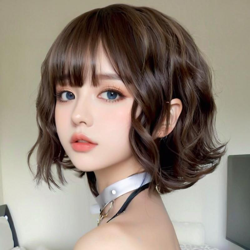 TEMU 일본식 볼륨 웨이브 숏 헤어 가발 - 자연스러운 딥 웨이브, 간편한 질감, 모든 라이트 베이지 톤 & 얼굴형에 어울리는 풍성한 볼륨, 일상 및 특별한 날을 위한 일본식 볼륨 웨이브 헤어스타일 (가발만)