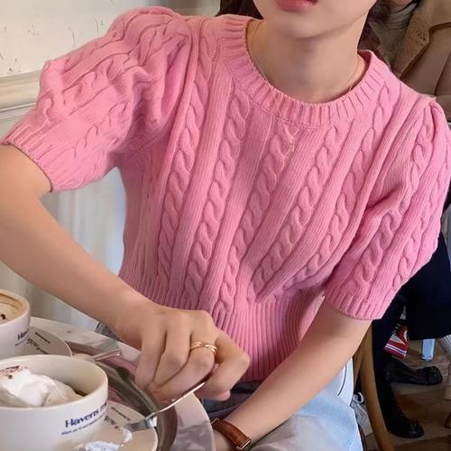 [휴드]롤링패턴 여름 라운드 반팔 니트 3color