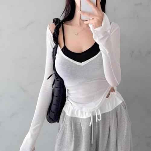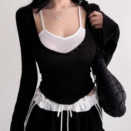 [다잇템][다잇템] 여성 롱슬리브 콘트라스트 탱크 슬리브리스 코디 티셔츠_23287632_588872