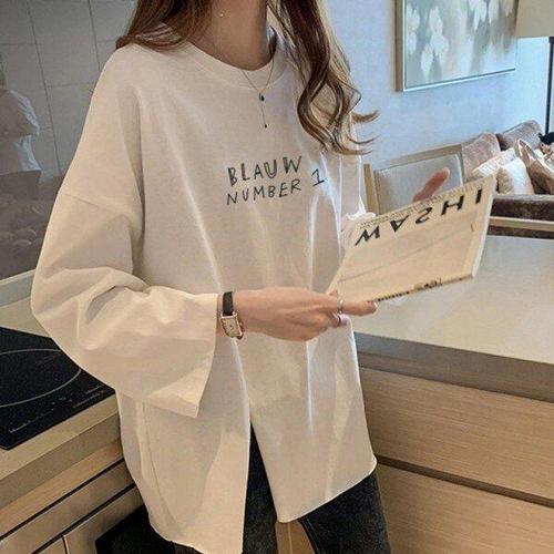 [모노무드]LMO BLAUW 넉넉핏 트임디테일 롱티 탑 프리미엄 우먼 반소매하프티 숏기장티 슬리브리스티