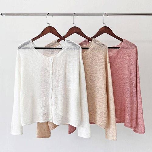 니트롱가디건 키밍 여름 얇은 여성 오픈형 롱 코튼
