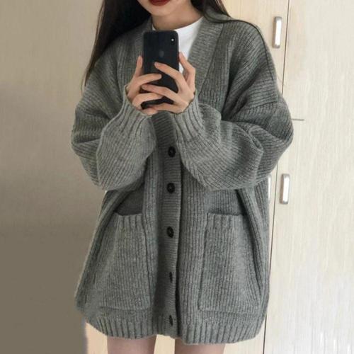 708090 여성 롱 니트 가디건 두꺼운 루즈핏 스웨터