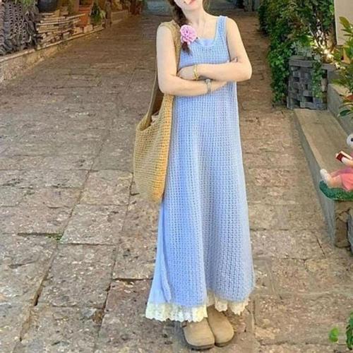 원피스 여자롱 끈나시 여성롱 여름 바캉스 니트 WFLMU0I