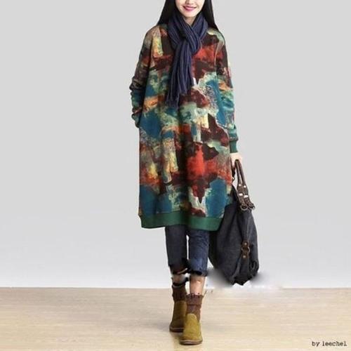 ELLE PARIS 루즈핏 기모 롱 스웻셔츠
