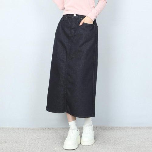 [파라노말샵]데님 생지 진청 난스판 뒷트임 롱 스커트 (파라노말샵