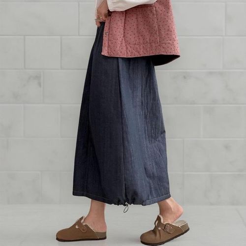 [옷자락] 여성 A라인 롱 데님 스커트 벌룬 스트링 밴딩 디자인
