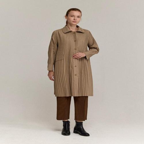 [플리츠미][플리츠미] 오픈 카라 트렌치 롱 자켓_PPJKF025007