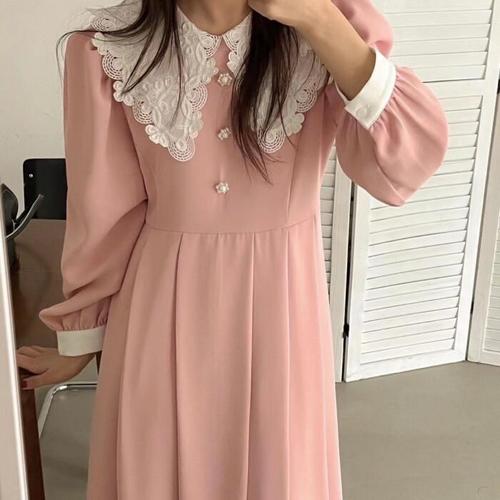 모찌봉 / 진주 플라워 단추 자수 카라 롱원피스