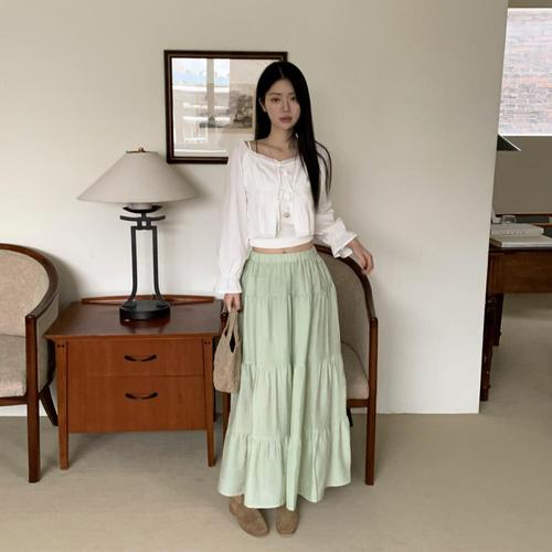 여자 여름 셔링 밴딩 캉캉치마 청순룩 A라인 롱스커트