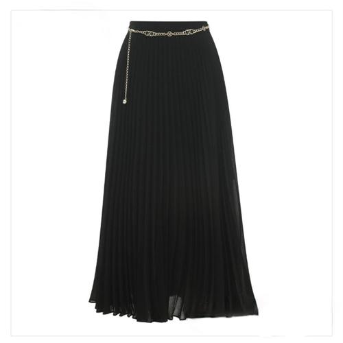 [미니멈]체인벨트 플리츠 롱스커트 (MYBAWS5240 BK3)_IC