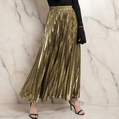 [미라클세븐]여성 이브닝 메탈릭 플리츠 롱 스커트