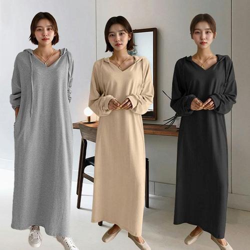 [애비뉴투지]엄마옷 넉넉한 루즈핏 후드 봄 가을 겨울 긴팔 주머니 롱 원피스 O11112 50대 60대 중년여성