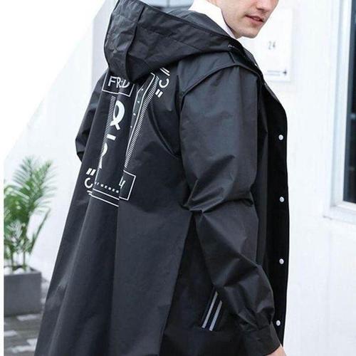 패션 블랙 성인용 윈드브레이커 스타일 방수 롱 레인코트 여성 남성 후드형 야외 오토바이, 자전거, 하이킹, 낚시용