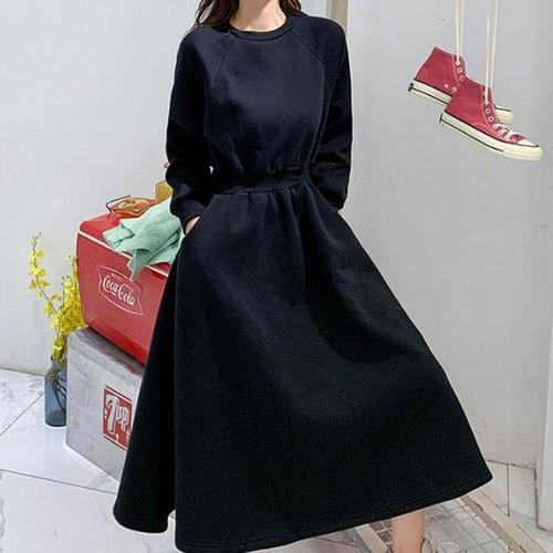 [모노무드]모노무드 캐주얼 여성 겨울 기모 레터링 맨투맨 롱 원피스 치마