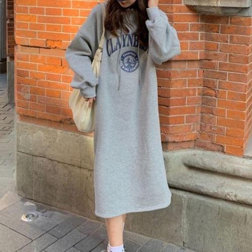 [에이치플러스몰]기모 후드 롱 루즈핏 원피스 맨투맨 그레이