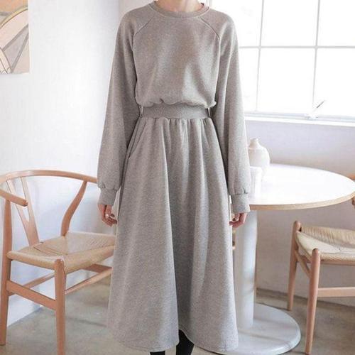 [에이치플러스몰]여성 맨투맨 롱 플레어 주머니 원피스 그레이