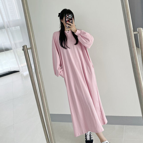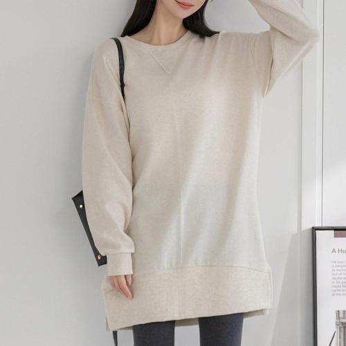 여자 잔골지 맨투맨 옆트임 루즈핏 심플 롱원피스