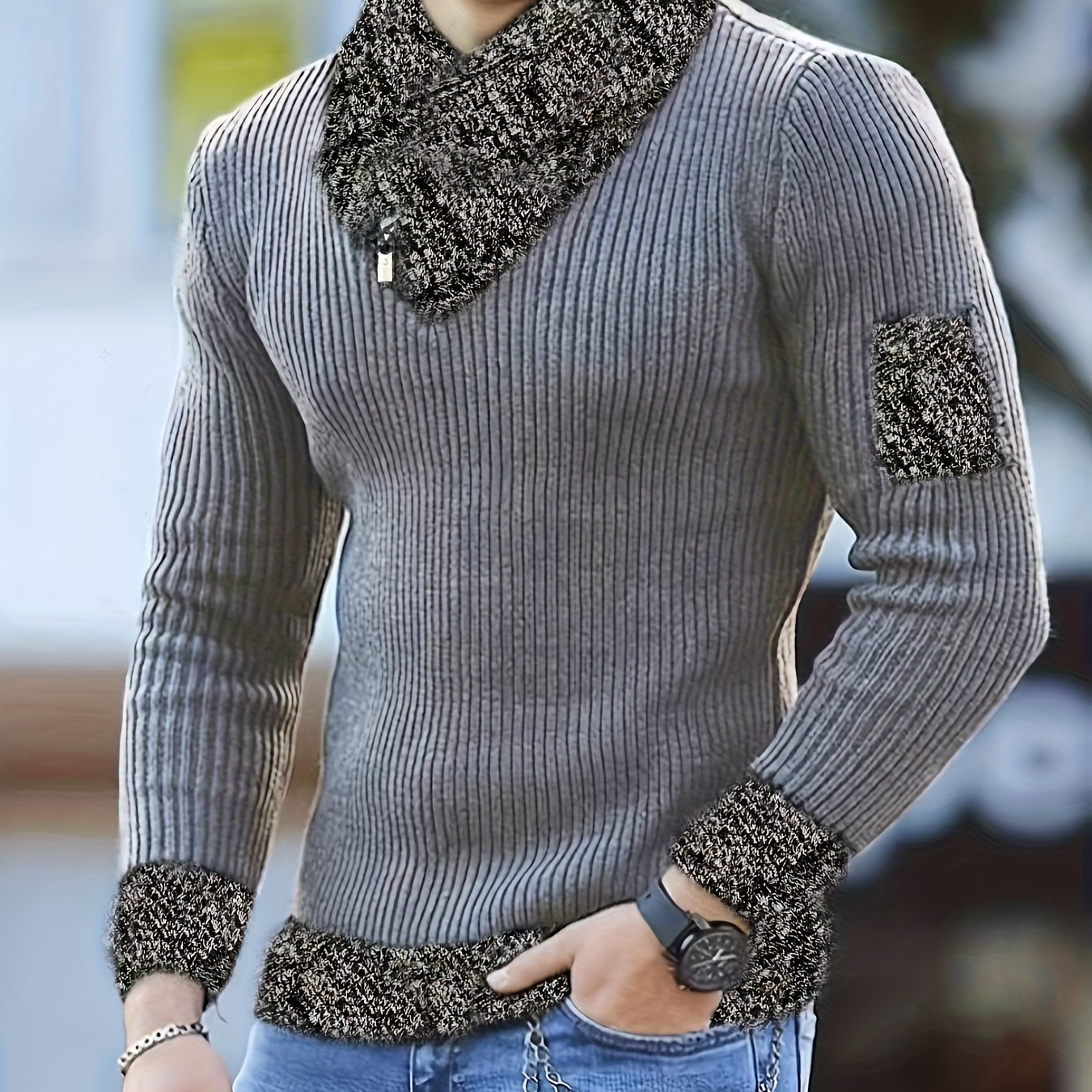 TEMU 남성 패션 풀오버 긴팔 어반 스카프 하이넥 스웨터, 캐주얼 스타일|스카프