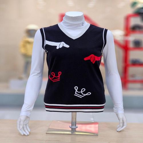[루이까스텔]루이까스텔 여성 FW 솔리드 전판 패턴 인타샤 브이넥 니트 베스트 (블랙) 7LDVT935_IC