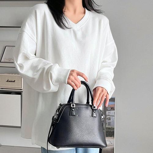 [미라클세븐]여성용 브이넥 롱 티셔츠 오버핏 무지 디자인 양쪽 트임